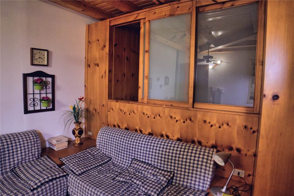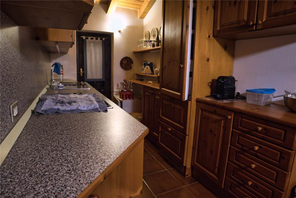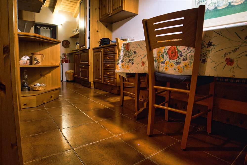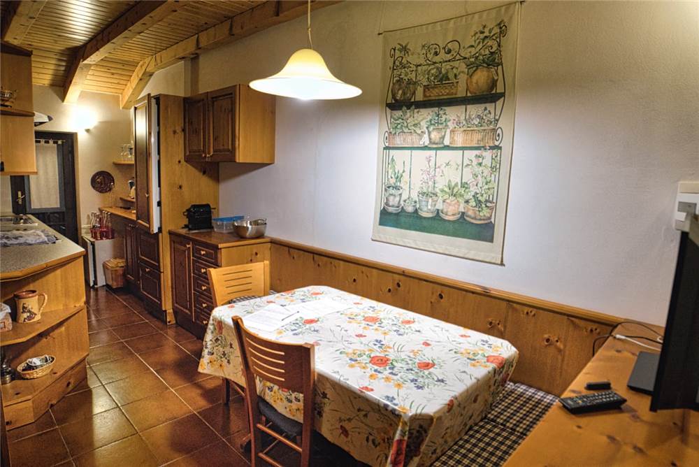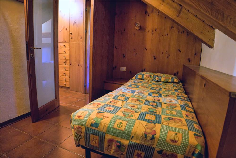 L'appartamento che proponiamo sorge al terzo ed ultimo piano della palazzina, è perlinato in stile montano ed ammobiliato quasi totalmente in legno. La ripartenizione dei locali è la seguente: ingresso, sala, cucina, bagno con doccia e lavatrice e due camere da letto. I pavimenti sono in piastrelle, mentre gli infissi di finestre (e porte-finestre in cucina e in camera) sono in legno con doppi vetri in ogni locale.