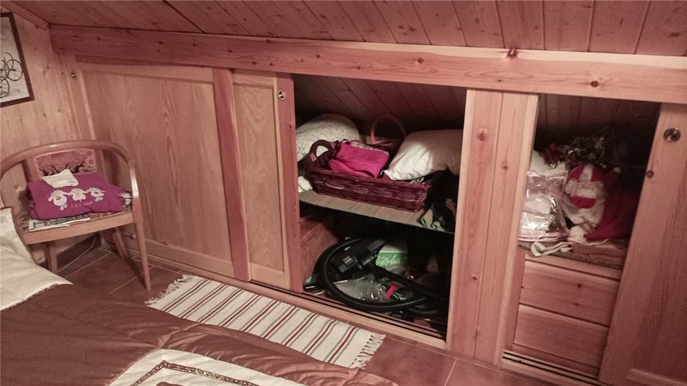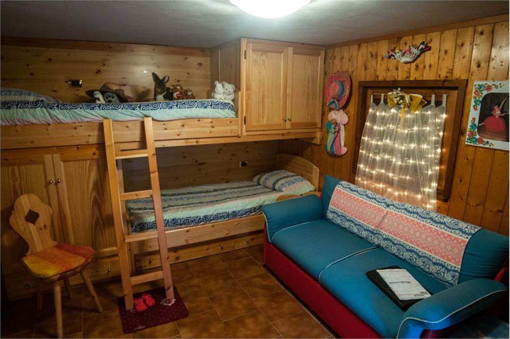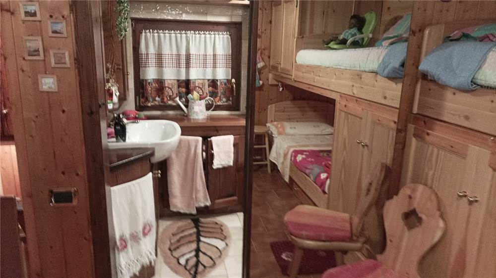 Una efficace coibentazione interna in polistirene garantisce una resa energetica certificata di classe D. A farla da pardone qui è il legno, tipico e accogliente elemento alpino. Questo vale sia per le pareti, quasi totalmente perlinate (tranne in bagno) che per gli arredi, con mobili su misura e cassapanche progettate per fruire al meglio degli spazi abitativi. Il mobilio e gli elettrodomestici sono ricompresi nella vendita.