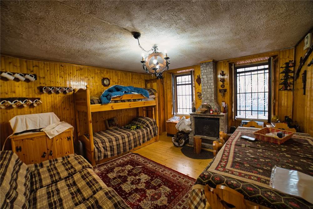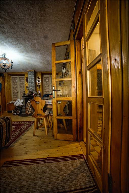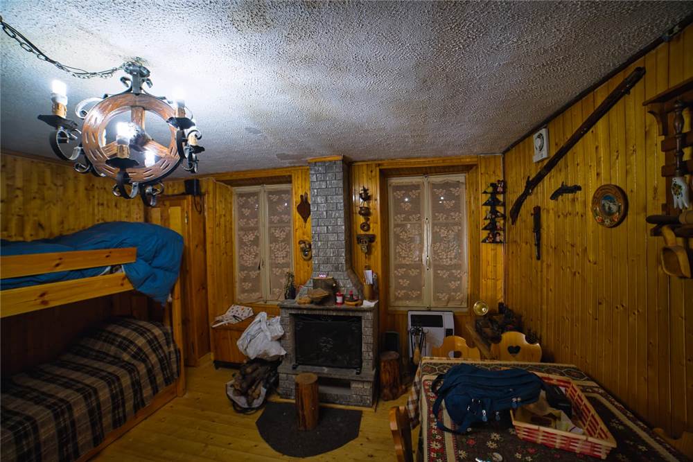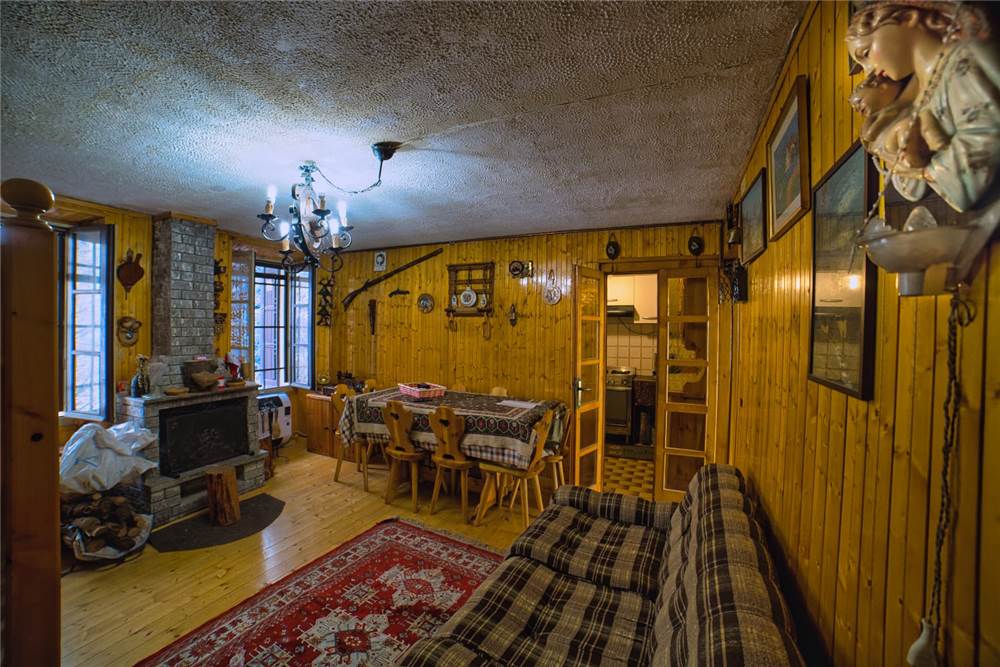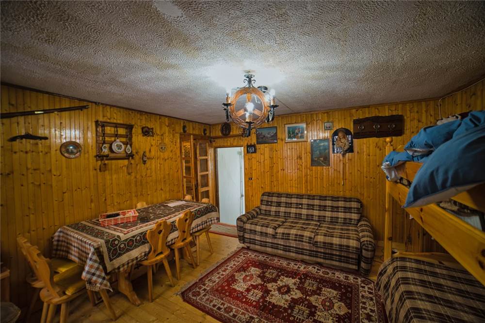 Lo stabile, composto da una decina di unità abitative è immerso nella pace e nella natura tipica di questo angolo di Piemonte. L'appartamentino è facilmente accessibile da una sala comune al piano terra; da qui salendo una breve scalinata si giunge alla porta dell'unità. Una volta entrati, ci accoglie la sala principale in stile alpino con suppelletti tipici e camino in pietra a far bella mostra di se, riscaldata anche da termo convettore a metano. Questo è il luogo di elezione per pranzare sul lungo tavolo in legno. L'ambiente è promisquo essendo adibito anche a stanza con letti a castello e divano letto. Il locale è caratterizzato da un caloroso rivestimento in legno perlinato con pavimenti in parquet.