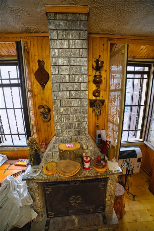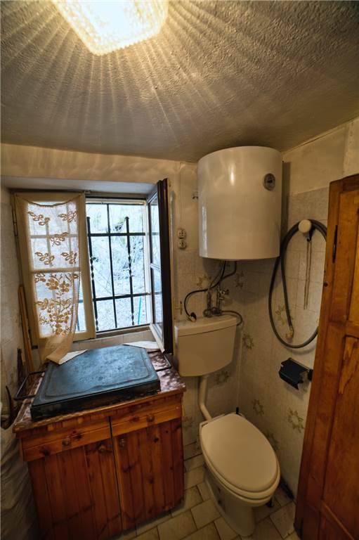 In cucina e nel bagno i pavimenti sono in piastrelle, metre tutti gli infissi in legno con vetro singolo.