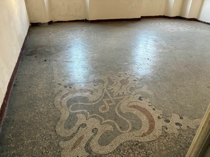 • Pavimenti originali in graniglia con decorazioni geometriche