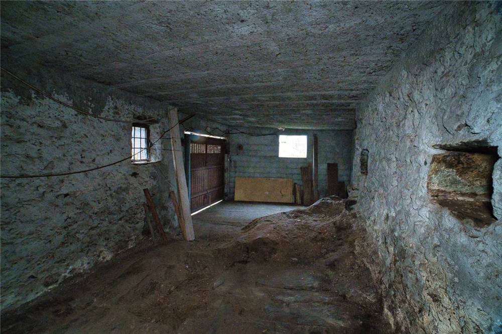 Nel cortile del giardino, lastricato in sasso, è presente un ampio locale in parte adibito a box auto. Complessivamente, il fabbricato misura 250 mq, mentre il giardino circostante ne misura 330.