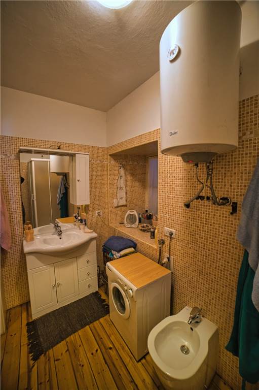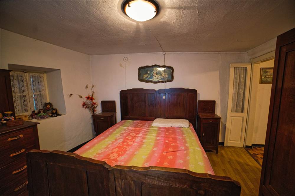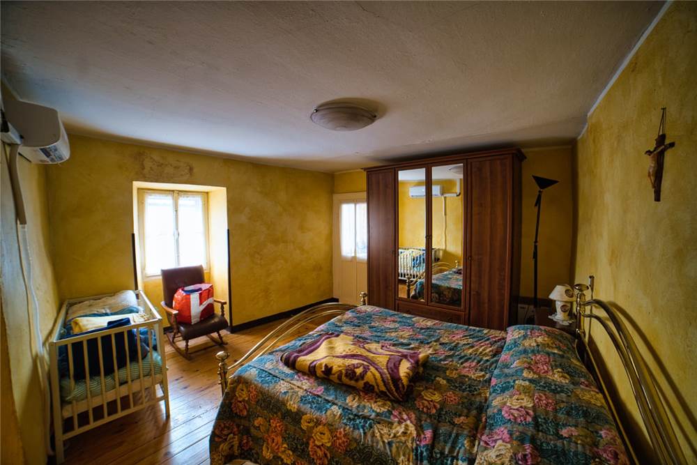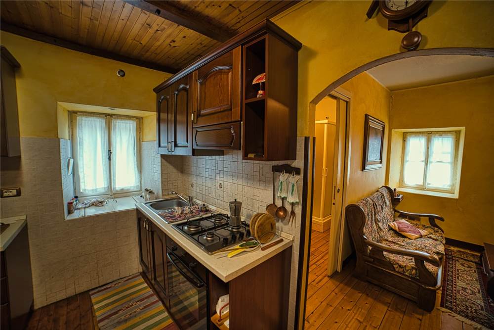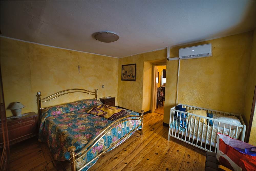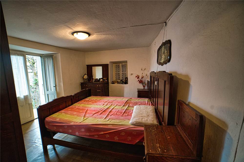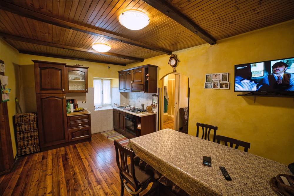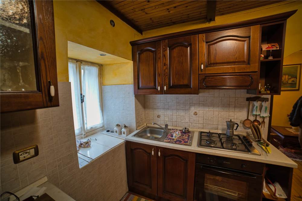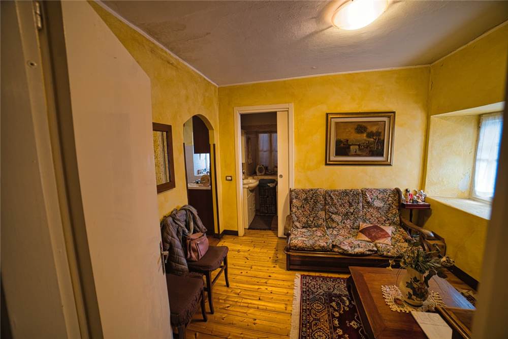 L'altro appartamento, è da ristrutturare ma già in uno stato abitabile. È costituito da cucina abitabile anch' essa dotata di elettrodomestici e piano cottura,una camera da letto singola, una matrimoniale che si estendere su un bel balcone perimetrale rivolto ad est; ad un lato del balcone è presente anche un piccolo bagno. I pavimenti sono in laminato, a anche qui abbiamo infissi in legno con vetro singolo. Il riscaldamento attualmente viene prodotto mediante stufa a legna in ghisa posizionata in cucina, mentre l'acqua è scaldata da scaldabagno elettrico situato sempre in cucina.