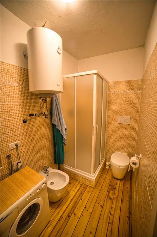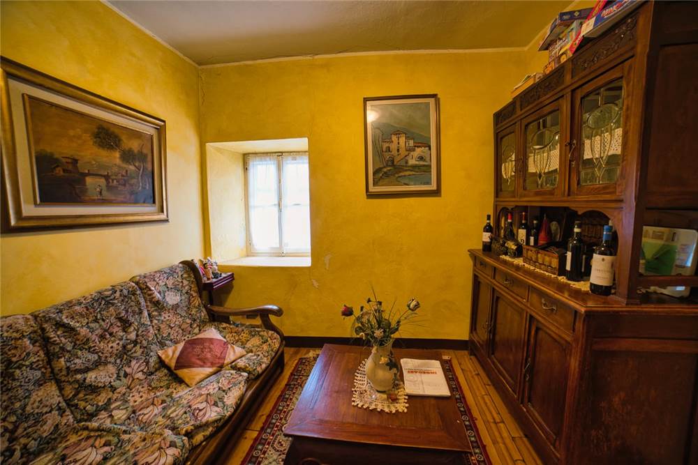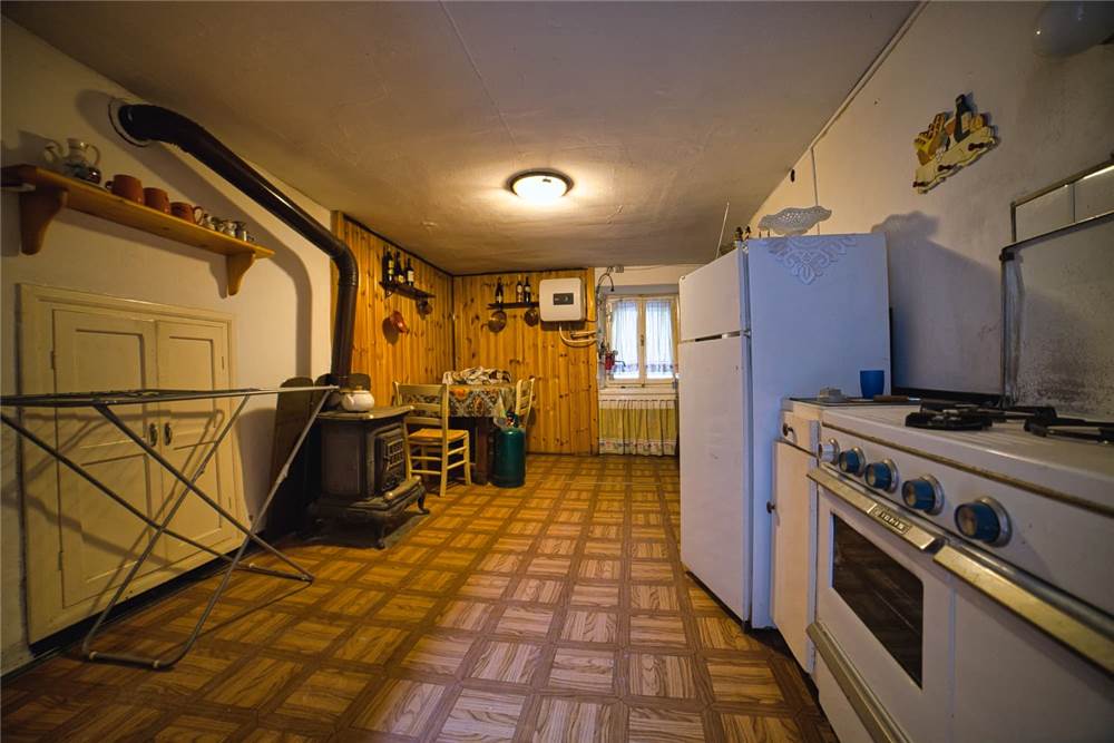 Nel dettaglio l'unità risulta cosi composta: all'ingresso abbiamo una funzionare e calorisa cucina abitabile con mobili ed elettrodomestici seminuovi in legno massello con camino dotato di bocchette per circolazione aria e pavimenti in piastrelle. Un'apertura ad arco conduce poi ad un grazioso soggiorno, e ad un bagno con doccia, lavatrice e scaldabagno elettrico che oltre a quella sanitaria scalda anche l'acqua in cucina. I muri sono parzialmente piastrellati e anche qui i pavimenti sono in legno.